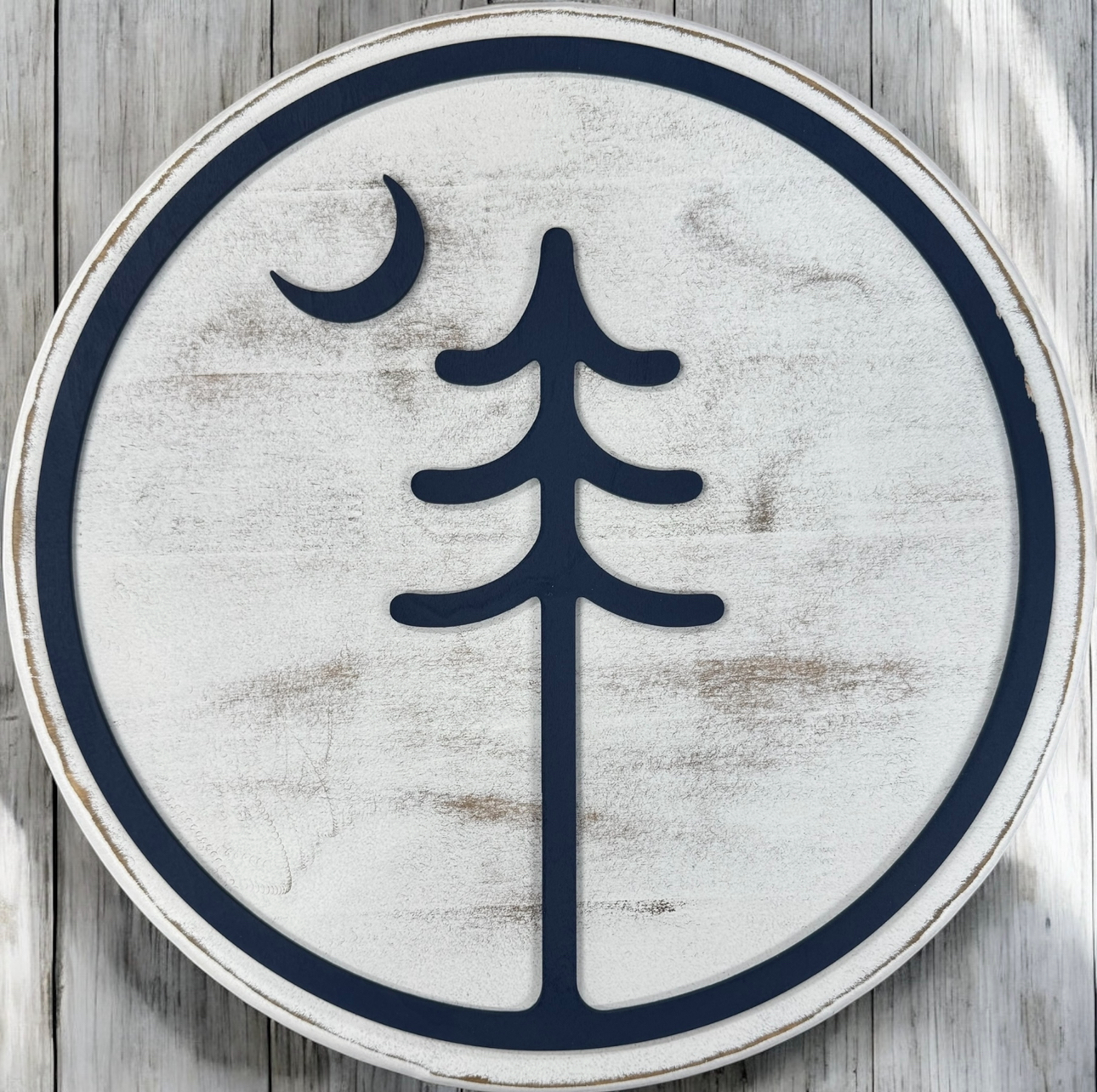 Squid Designs – Navy Tree & Moon Sign 15″